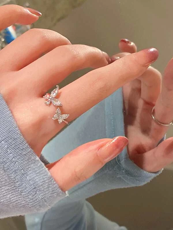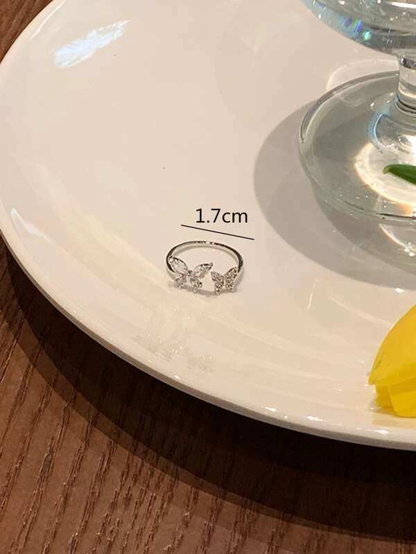 Seja o primeiro a avaliar “Anel prata de strass e decoração borboleta”